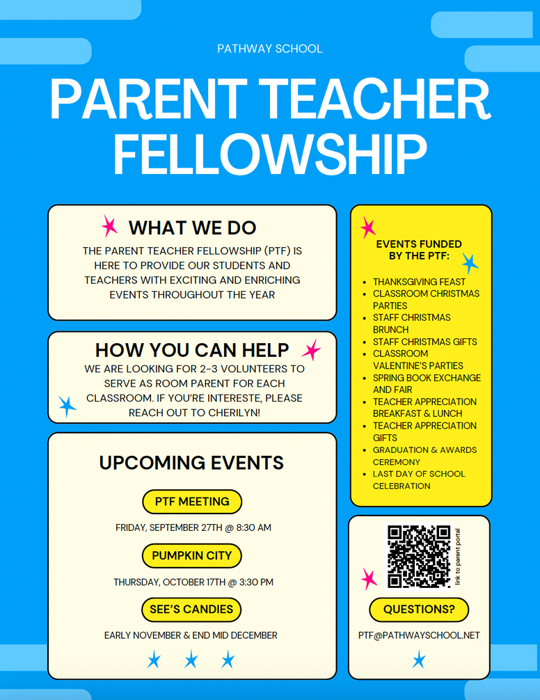 Scholastic Books: Order books for your child throughout the school year and help Pathway School earn points to replenish our school library. Paper fliers will go home throughout the school year. All orders must be placed and paid for online. When ordering, please always list your child's first and last name when asked. https://clubs.scholastic.com/home